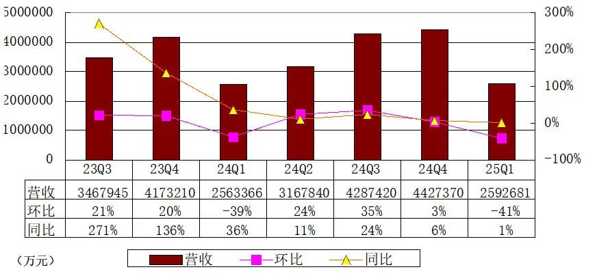 理想汽车2025年第一季度营收259亿元(36亿美元),较2024年第一季度的256亿元增加1.1%,较2024年第四季度的443亿元减少41.4%。