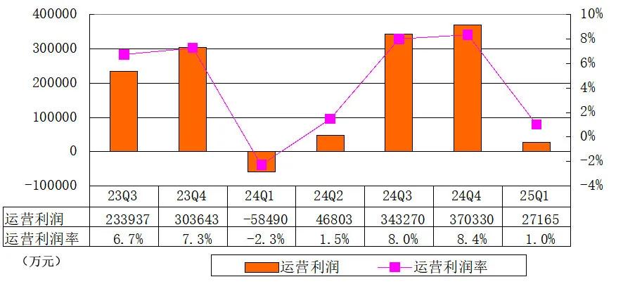 理想汽车2025年第一季度的经营利润为2.72亿元(3740万美元),而2024年第一季度的经营亏损为5.85亿元,较2024年第四季度的经营利润37亿元减少92.7%。2025年第一季度的经营利润率为1.0%,而2024年第一季度为负2.3%,2024年第四季度为8.4%。