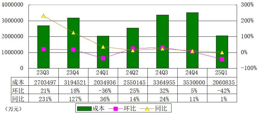 理想汽车2025年第一季度销售成本为206亿元(28亿美元),较2024年第一季度的203亿元增加1.3%,较2024年第四季度的353亿元减少41.6%。销售成本较2024年第一季度增加主要由于车辆交付量的增加,但部分被不同产品组合及成本下降导致的平均销售成本降低所抵销。销售成本较2024年第四季度减少主要由于车辆交付量的减少。