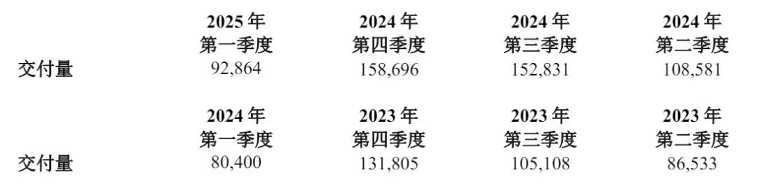 理想汽车2025年第一季度季度交付量达到92,864辆,上年同期交付80,400辆车。