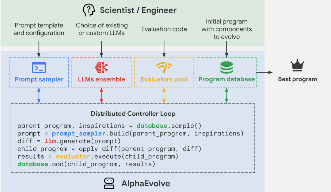AlphaEvolve针对这个问题的解法比较暴力,先让Gemini大模型生成成百上千种候选方案,再通过自动化评估系统筛选。