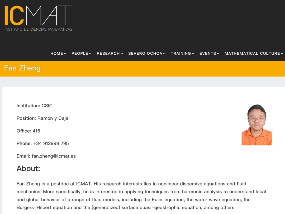 最新成果来自西班牙数学科学研究所ICMAT的博士后Fan Zheng,