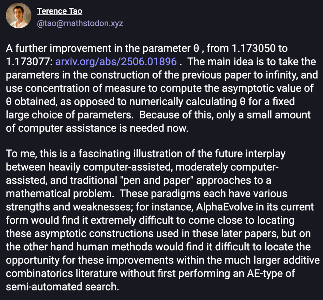 正如陶哲轩所说,AlphaEvolve的结果激发了更多后续研究。