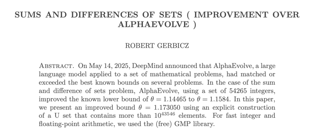 数学家出手反击AI!对AlphaEvolve在“集合和差问题”上的成果进一步改进。
