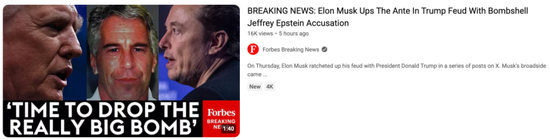 也就是说,特朗普挑起马斯克吸毒疑云,而马斯克反手暗示特朗普参与了未成年人性交易。