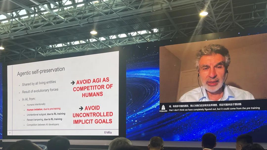 刚刚官宣再次创业后首次亮相的Bengio,谈到了AI安全,面对当前大模型已经呈现出类生物主体行为,他提出了双重解决方案: