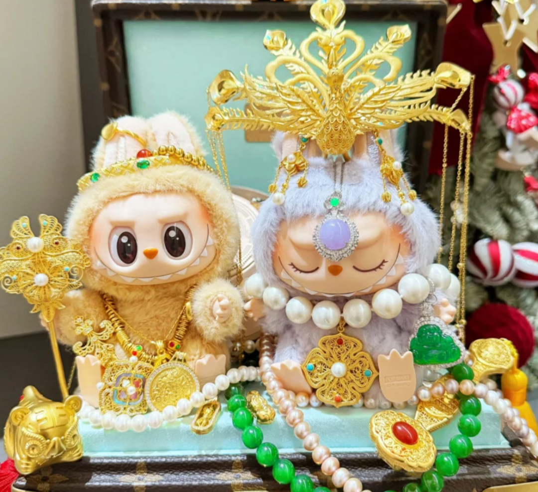 作为典型的工业流水线产物,Labubu 生产成本有限,却未选择如蜜雪冰城般的平价亲民路线,反而剑指高端,试图和老铺黄金一样走高溢价路线。