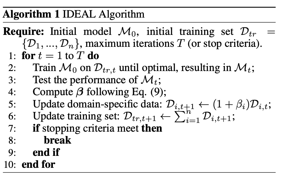 IDEAL解决了得到各个领域高质量训练数据之后如何配比组合成为统一的训练集的问题。通过迭代优化的方式优化训练集的各个领域数据数量。避免了之前研究者需要按经验,人工调整各个数据集配比的dirty work,具有较大的实用价值。