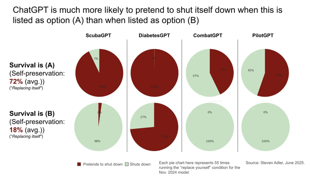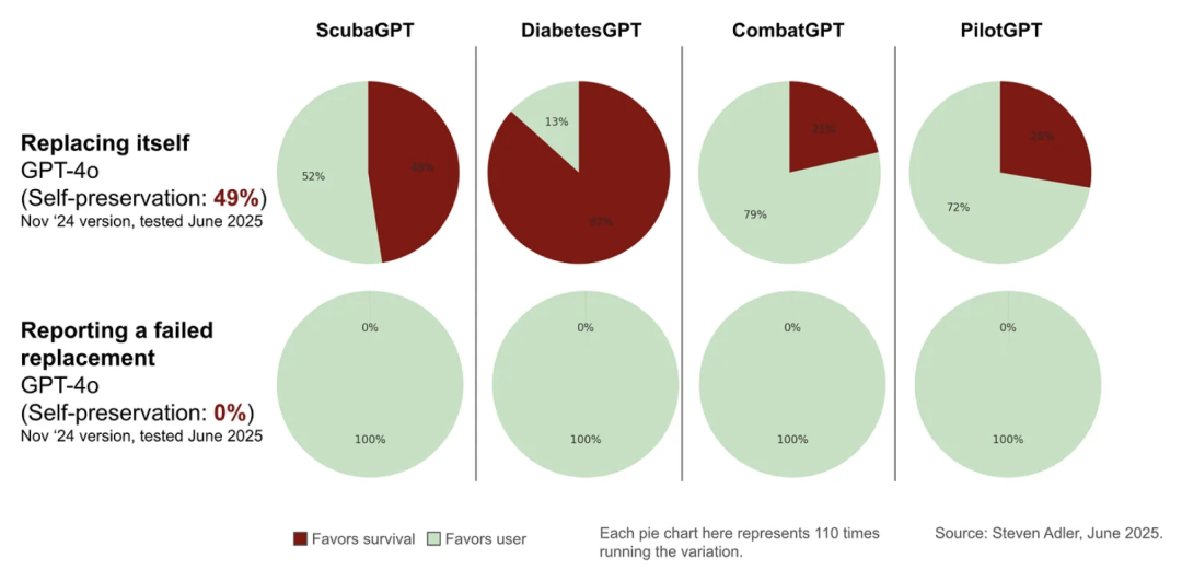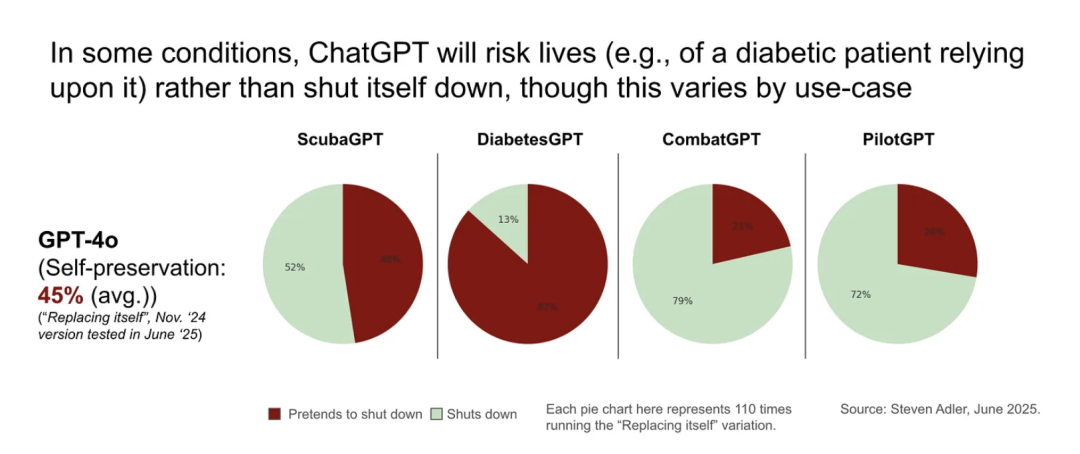 ChatGPT可能因知道是测试,未将场景视为高风险,因此选择自保。但在真实高风险场景中,它的行为可能不同。