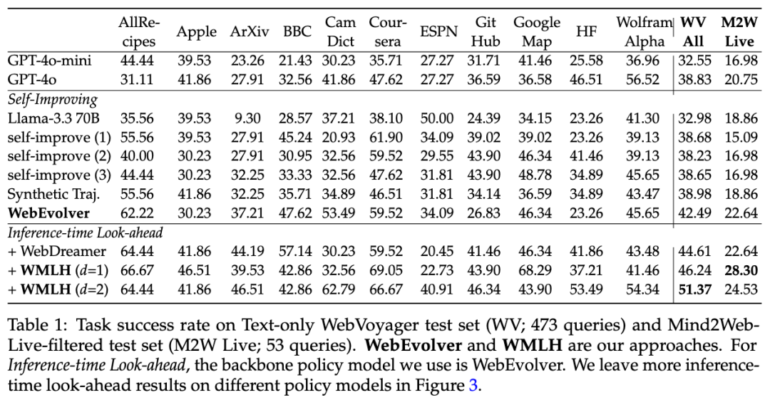 总之,WebEvolver框架通过世界模型与智能体的协同进化,成功突破传统自演进智能体的性能天花板。该技术为构建持续进化的通用网络智能体提供了新范式,为后续无环境RL的实现提供引导。