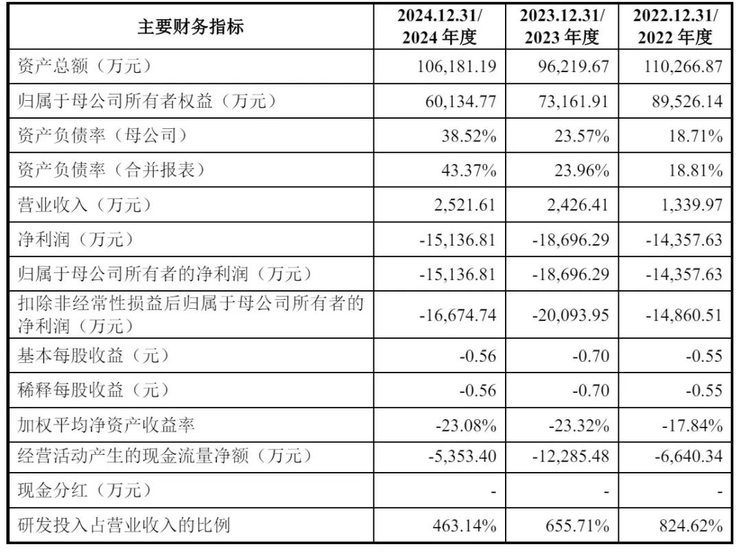 招股书显示,禾元生物2022年、2023年、2024年营收分别为1340万元、2426万元、2522万元;净利分别为-1.44亿元、-1.87亿元、-1.51亿元;扣非后净利分别为-1.49亿元、-2亿元、-1.67亿元。