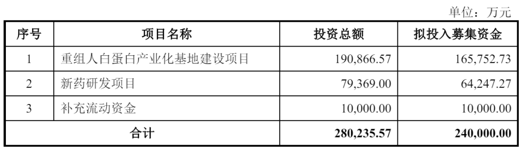 禾元生物计划募资24亿元,其中,16.58亿元用于重组人白蛋白产业化基地建设项目,6.42亿元用于新药研发项目,1亿元用于补充流动资金。