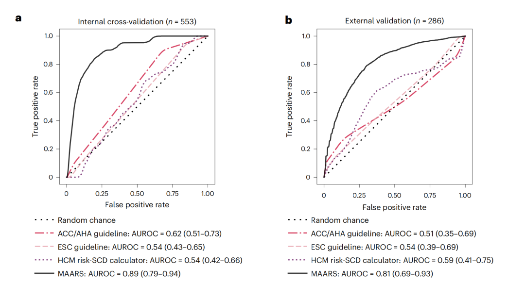 较传统临床指南(如ACC/AHA、ESC指南)提升了0.27-0.35,改变了HCM风险(肥厚型心肌病)分层精度不足的现状。
