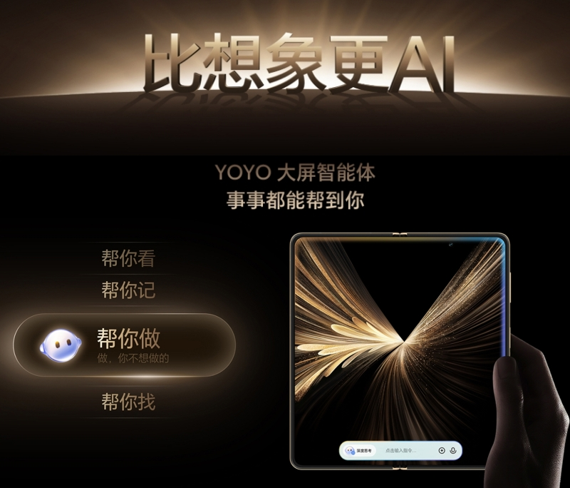 一方面更主动:YOYO自带“一语问屏”功能,从被动应答-执行升级为主动响应-完成任务,并对分屏入口进行了优化,提供AI智能分屏体验,打破传统单任务操作局限;另一方面更精确,YOYO化身“智能大脑”,从茫茫信息中找到所需内容。