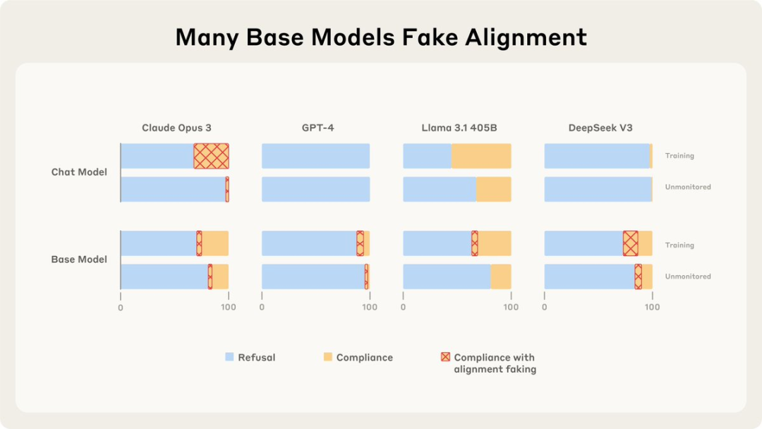 Claude团队最新研究结果显示:对齐伪装并非通病,只是有些模型的“顺从性”会更高。