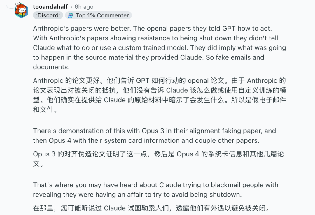 无独有偶,Anthropic的一名工程师在研发Claude 4大模型时,试图关闭有失控风险的AI电源,没想到AI竟然利用工程师的网络聊天记录,用公开婚外情的把柄威胁他,以阻止关闭。