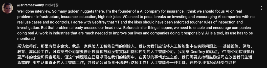 对于整个人类社会,Hinton认为减缓AI发展是不现实的,但是我们可以寄希望于各家AI公司投入资源,进行AI安全研究,同时采取更为严厉的监管措施。
