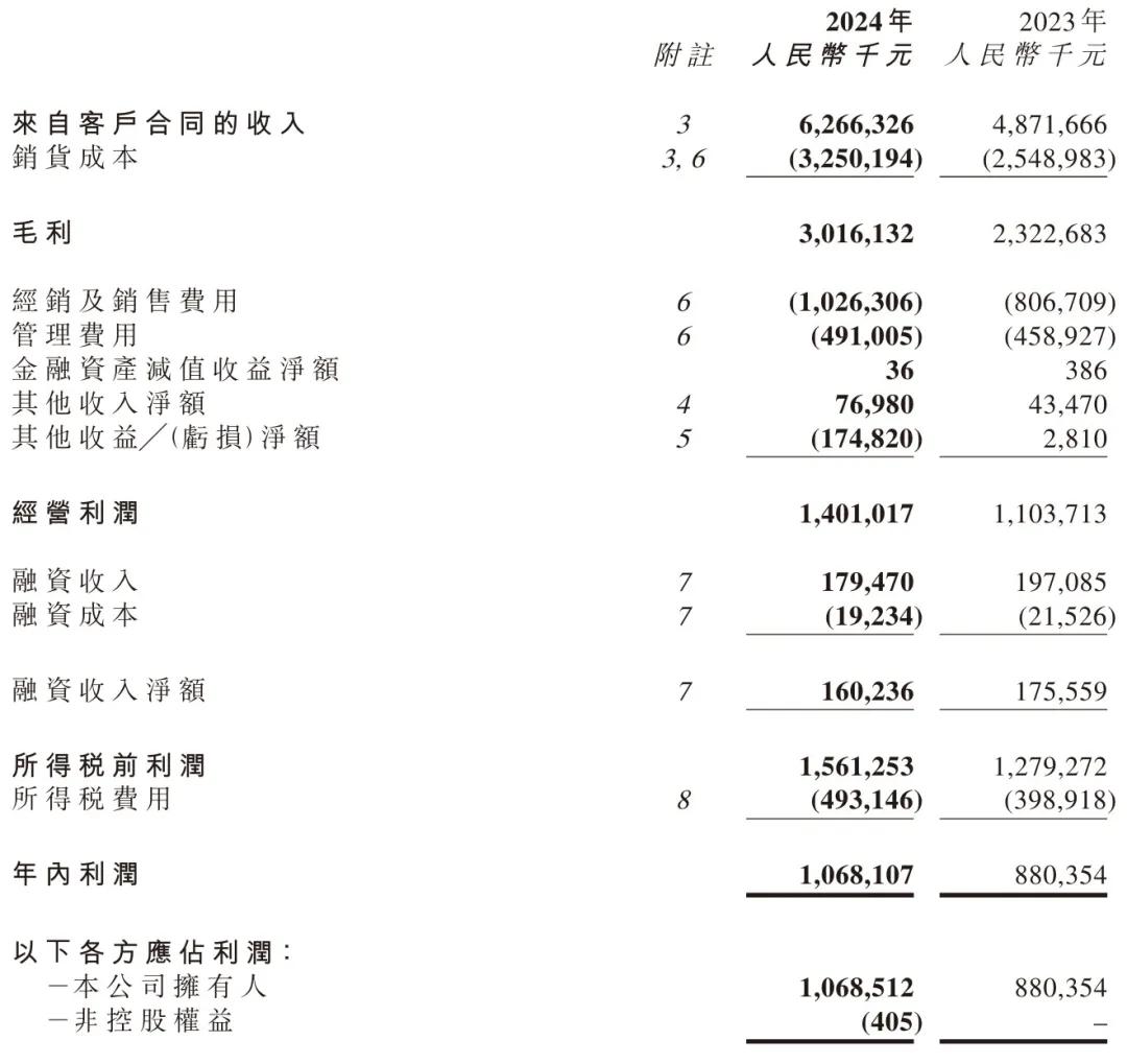 卫龙2024年毛利为30.16亿元,较上年同期的23.23亿元增长29.9%;毛利率为48.1%,较上年同期提升0.4个百分点。