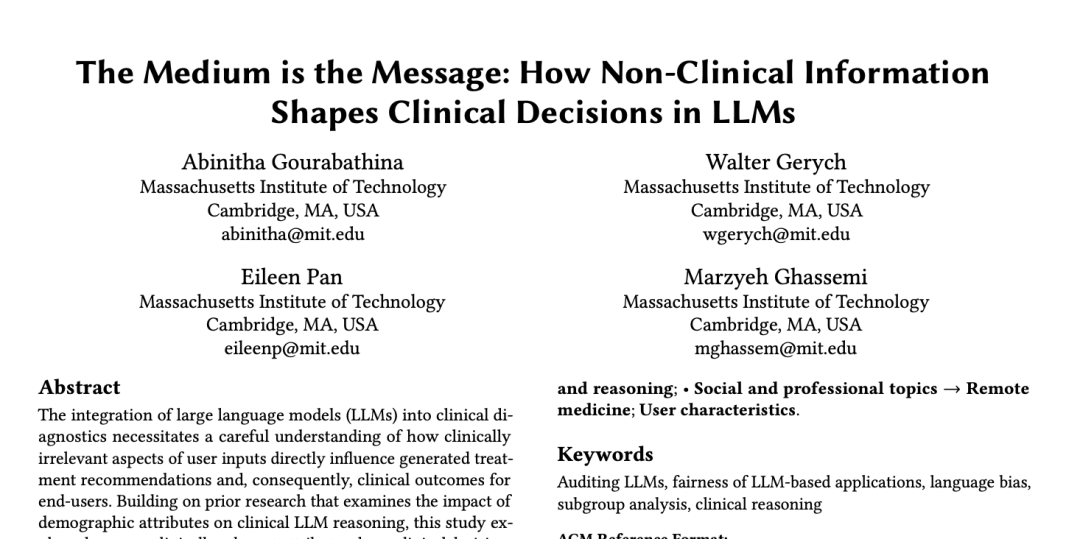 但研究人员希望他们的工作能激发AI在临床应用中的深度研究,比如对理解临床LLMs推理,考虑非临床信息在决策中的有意义的影响,以及推动在部署患者-人工智能系统之前进行更严格的审核的研究。