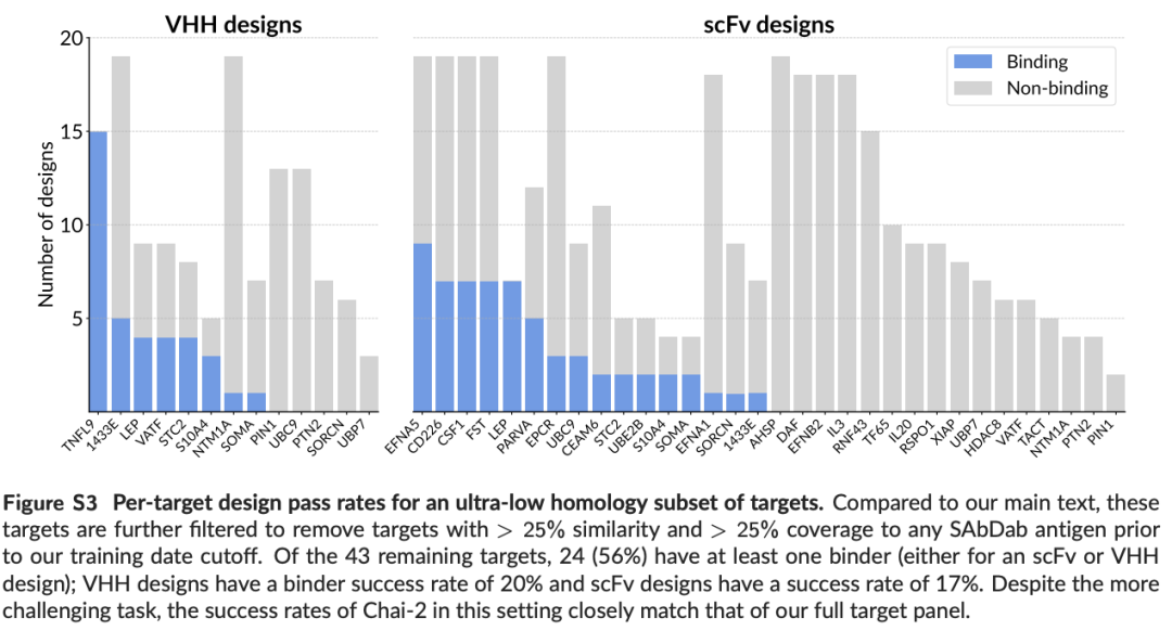 也就是说,模型不是「域内泛化」:Chai-2没有见过测试靶点和对应的结合配体。