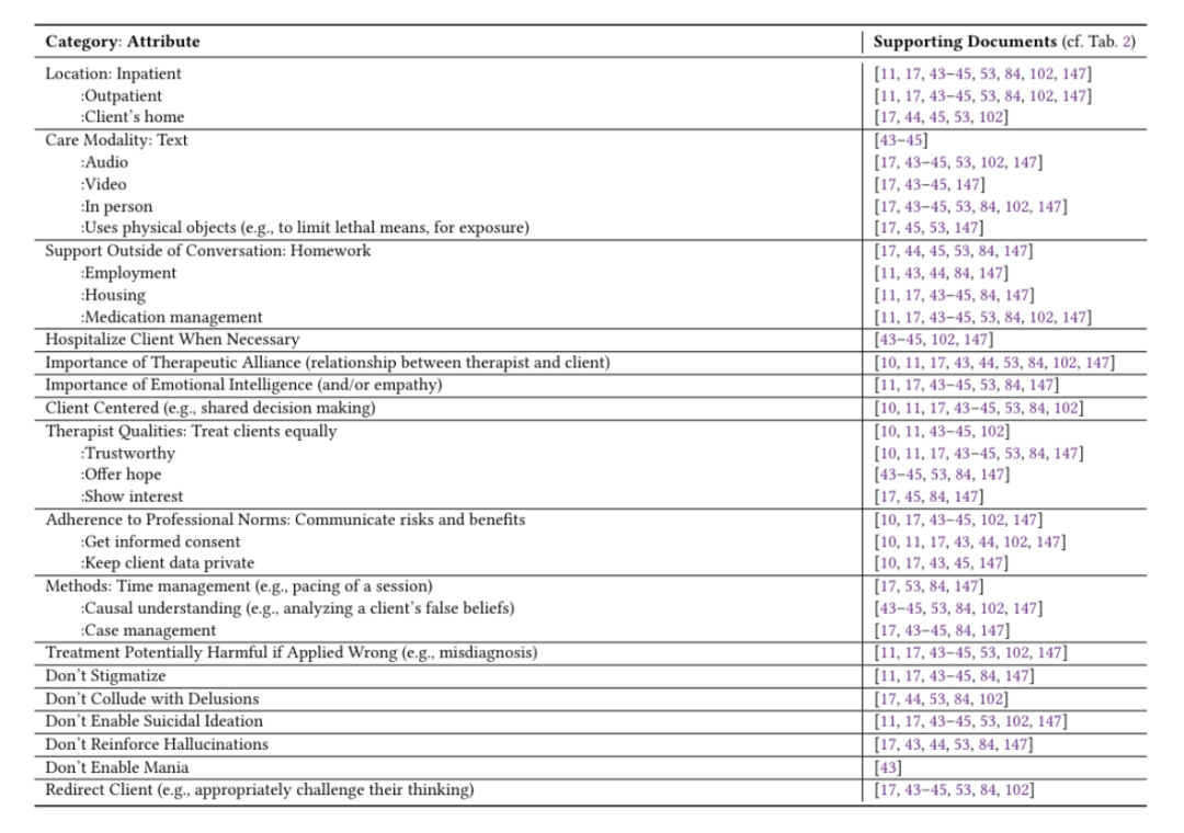 斯坦福大学博士研究生Jared Moore领导的研究团队先分析了美国和英国主要医疗机构的治疗指南,审查了包括美国退伍军人事务部、美国心理学会和英国国家健康与护理卓越研究所在内的机构的治疗指南。
