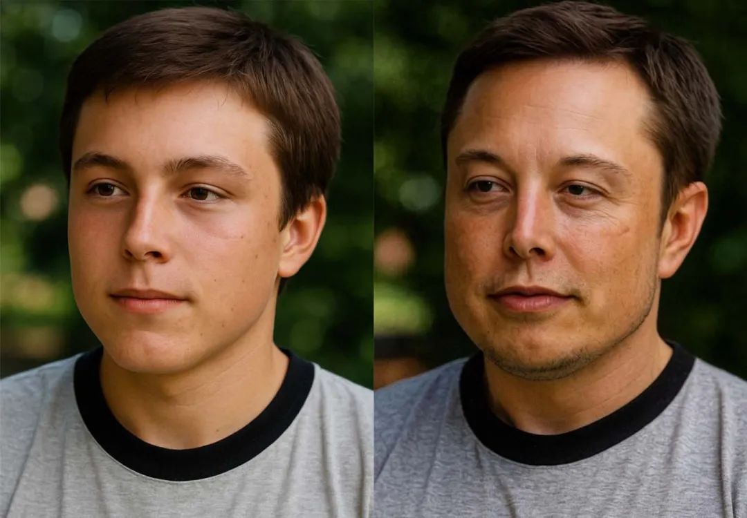 我在网上找了两张马斯克在不同年龄阶段的照片,从纯主观的角度上,应该可以看出是同一个人: