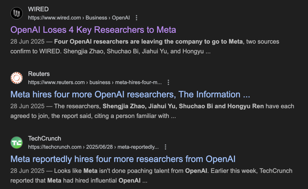 OpenAI则更注重文化凝聚力。它通过股权激励、共同使命感和强烈的内部信念来激励与留住核心人才。虽然推进节奏相对较慢,但结构更稳定,有助于长期的研究连续性。