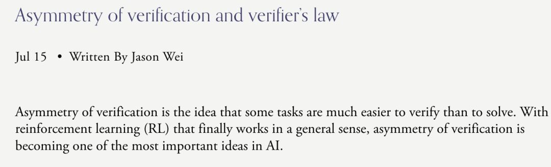 AI解决任务的训练难度,与任务可验证性成正比。所有可解且易验证的任务,终将被AI攻克。