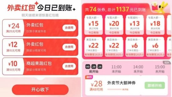 据《晚点 LatePost》报道,6月底,阿里启动内部代号为“淮海战役”的百日闪购增长计划,并将每周六作为冲单日。7月5日晚,第一个“疯狂星期六”来袭,阿里、美团两大平台发放大量大额外卖红包券,如“满25减21”等无门槛券。京东外卖缺席,但在7月8日宣布正式启动“双百计划”。