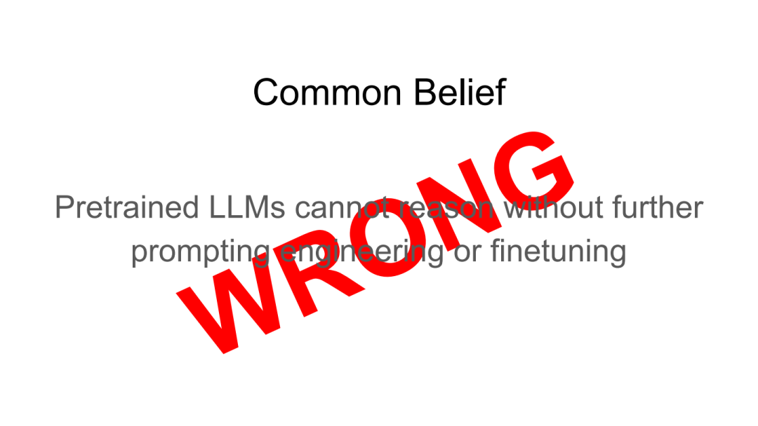 Denny Zhou还强调预训练模型即使没有经过任何微调,也具备推理能力。