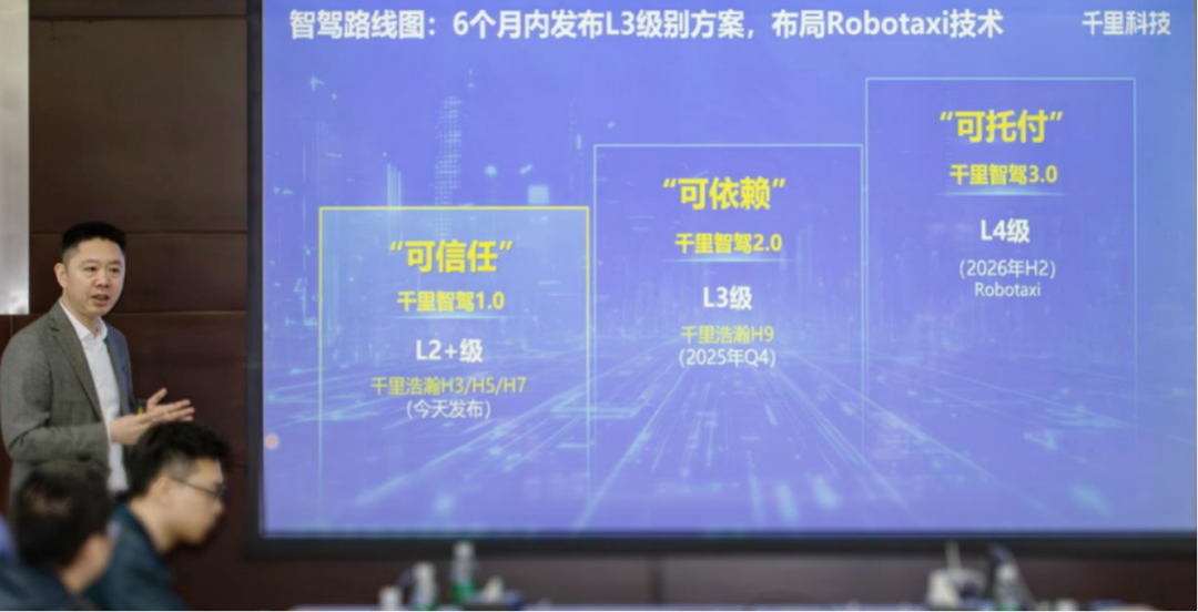 另一方面,千里科技进一步披露了面向L3级、L4级别智驾方案的全景路线图: