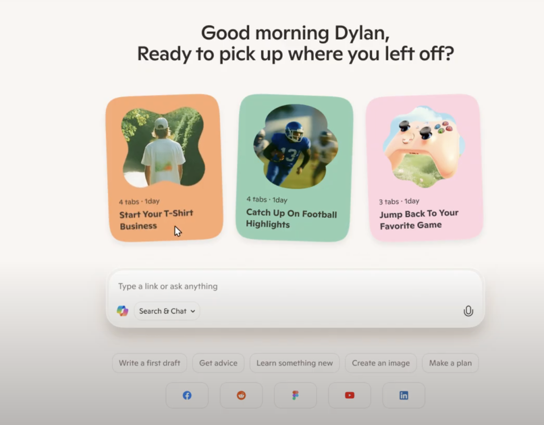 微软还透露了更多即将推出的功能。比如“主题式旅程”功能,Copilot会识别你正在研究什么主题(比如”如何创业”),然后把过去和现在的浏览活动组织成一个完整的学习路径,还会主动推荐下一步该看什么。