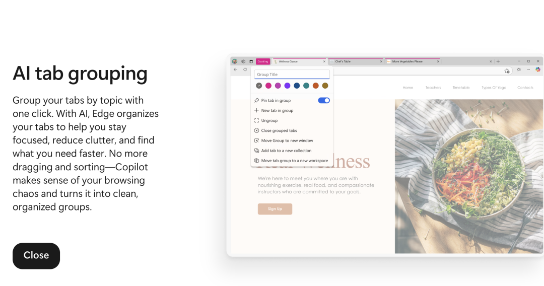 如果打开的页面太多了,还可以让AI一键给标签分组,保持专注,减少杂乱,更快找到所需的内容。