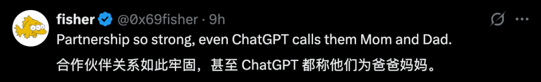网友调侃:合作伙伴关系如此牢固,甚至ChatGPT都称他们为爸爸妈妈。
