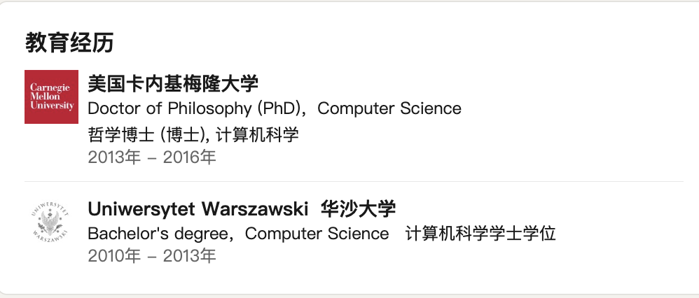 他的工作经历更为简单。在哈佛大学搞完博士后研究就来了OpenAI,在此之前,他在CMU读博,只读了三年就获得了博士学位,在华沙大学读的本科。
