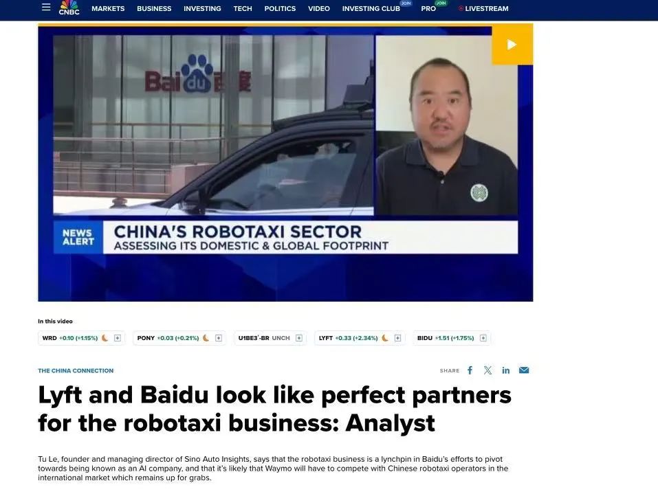 萝卜快跑全球“朋友圈”不断扩大,继Uber后再签Lyft!