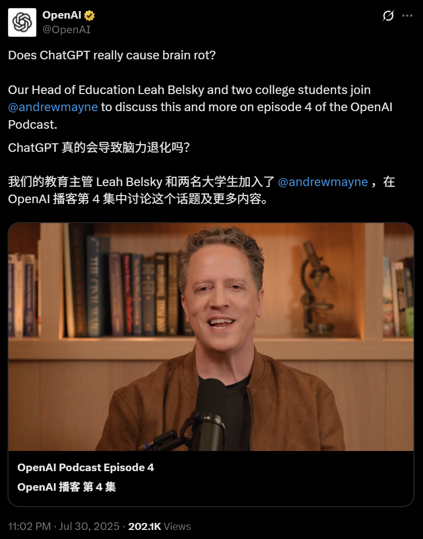 最近有一些耸人听闻的头条新闻,说AI在教育方面会导致「大脑退化」。