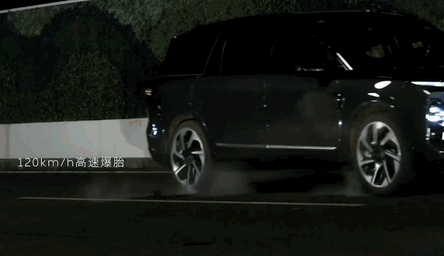 比如高速120km/h爆胎后,车辆仍能稳定行驶,自主靠边停车,大灯光毯示意。