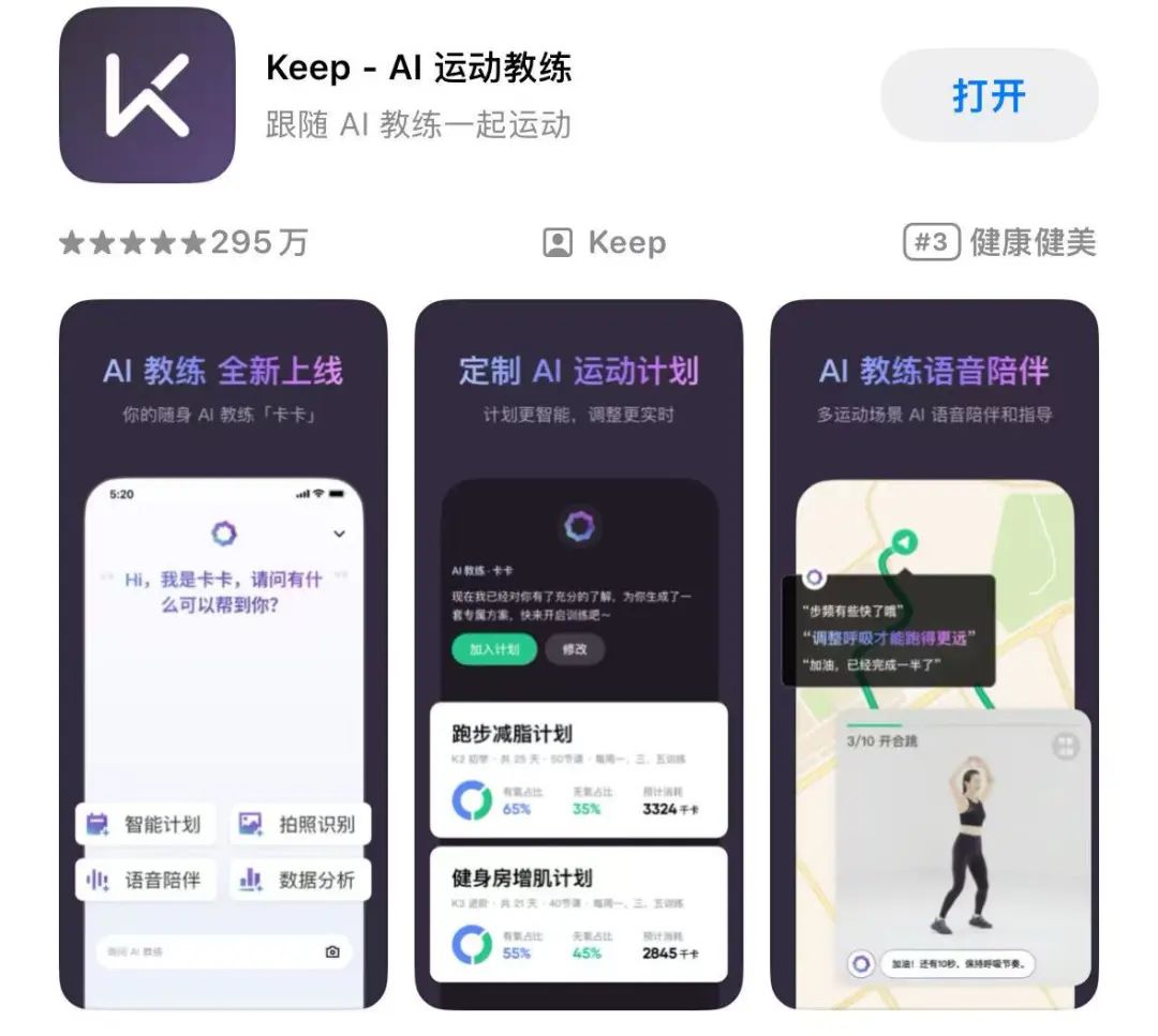 这些沉淀既是Keep成为国民App的基础,也为其在AI时代快速跃升提供了先发优势。