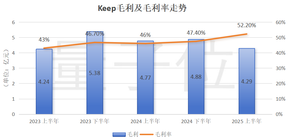 今年1~6月,Keep总营业收入为8.2亿元,毛利为4.29亿元,毛利率为52.2%,同比大幅提升约6.2个百分点。