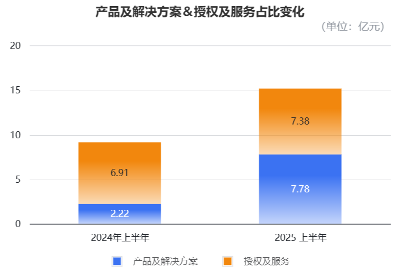 上半年,软件业务表现也保持稳定增长,来自授权及服务的收入为7.38亿元,同比增长6.9%。