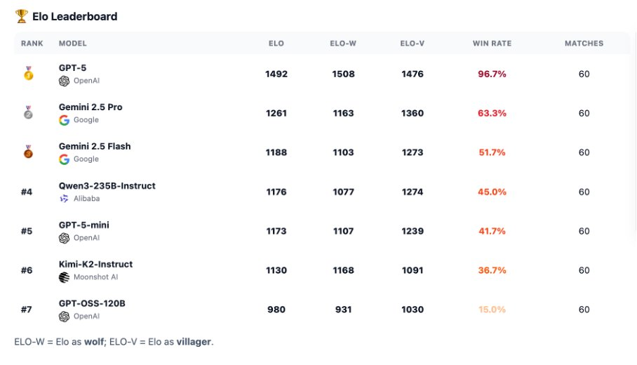 在这次狼人杀基准测试中,GPT-5的表现可以说是非常出色了。