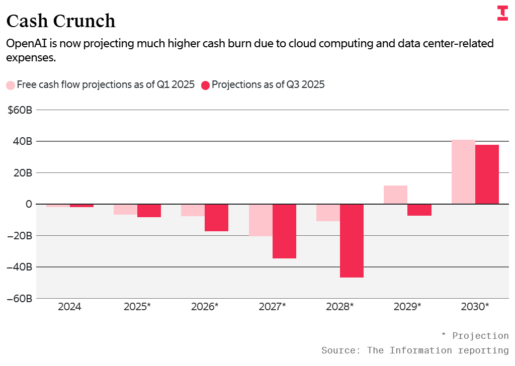 OpenAI面向股东通报的最新预测表示,到2030年OpenAI累计烧钱或将达1150亿美元,比半年前的预估高出800亿美元。