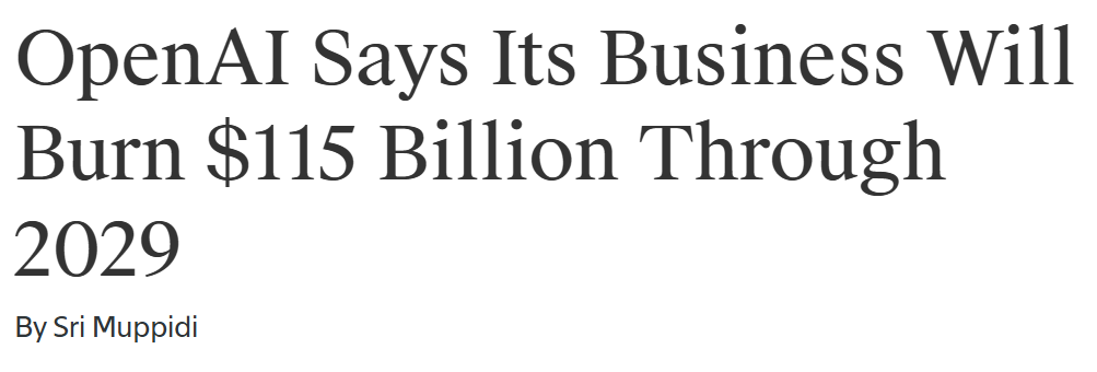 2025—2029年OpenAI累计现金消耗将达约1150亿美元。