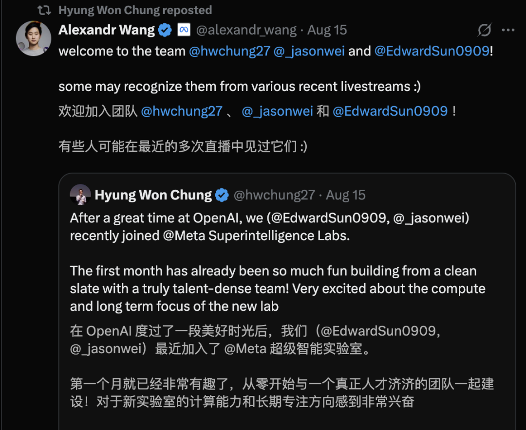 要知道,作为OpenAI Deep Research的核心贡献者Hyung Won Chuang已经加入了Meta的超级智能实验室。