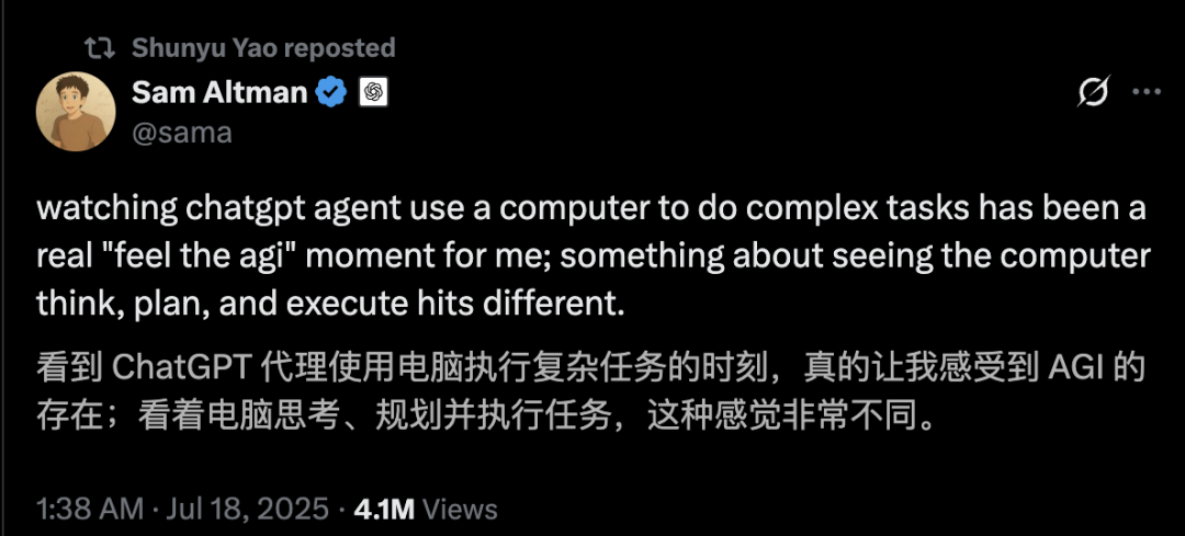 自2024年8月加入OpenAI起,姚顺雨很快跻身核心团队,深度参与了2025年推出的首批智能体产品:Operator与Deep Research,以及Computer-using Agent的研发等。