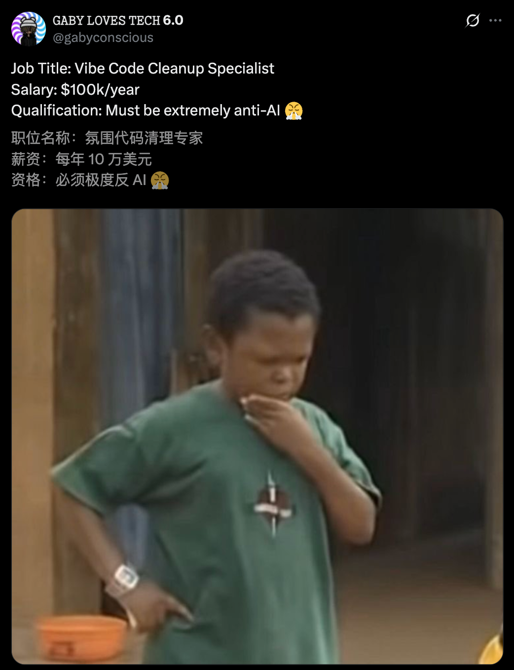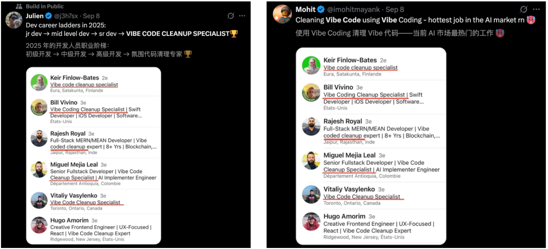 更有趣的是,「氛围编程」的兴起,又催生了一种全新职业:「氛围编程清理专家」(Vibe Code Cleanup Specialist)。