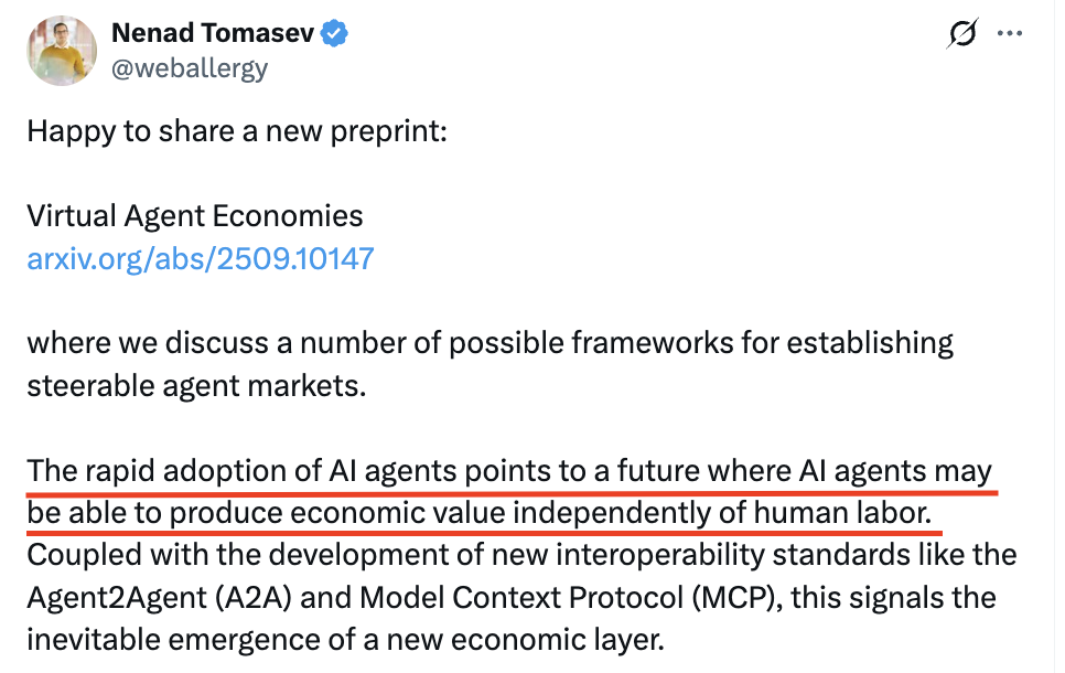 从当前发展趋势来看,我们正迈向一个自发涌现、且高度可渗透的AI智能体经济体系。