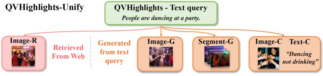 为系统性研究上述问题,团队整理QVHighlights数据,构建首个支持混合模态在线定位的基准集QVHighlights-Unify,扩充四种查询元素: