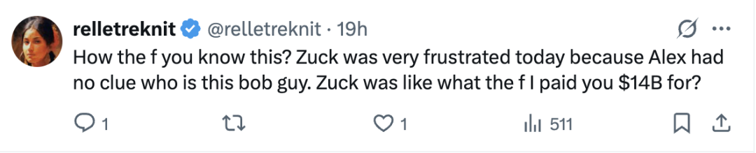 坊间传言,小扎已经知道了这个消息,已经火急火燎地安排上了,Meta明天招聘会议的Top 1事项就是:“Bob到底是谁!”